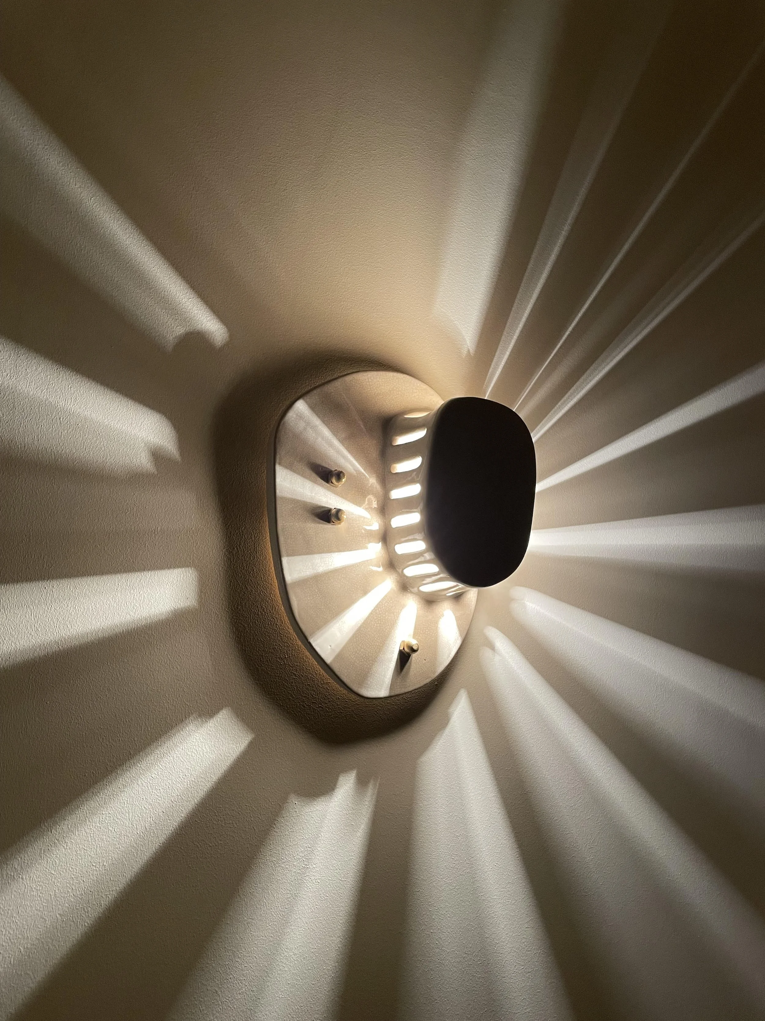 Des luminaires, bijoux le jour et présences la nuit, qui structurent une géométrie d’ombres et de lumières, redessinant l’espace et son atmosphère.
