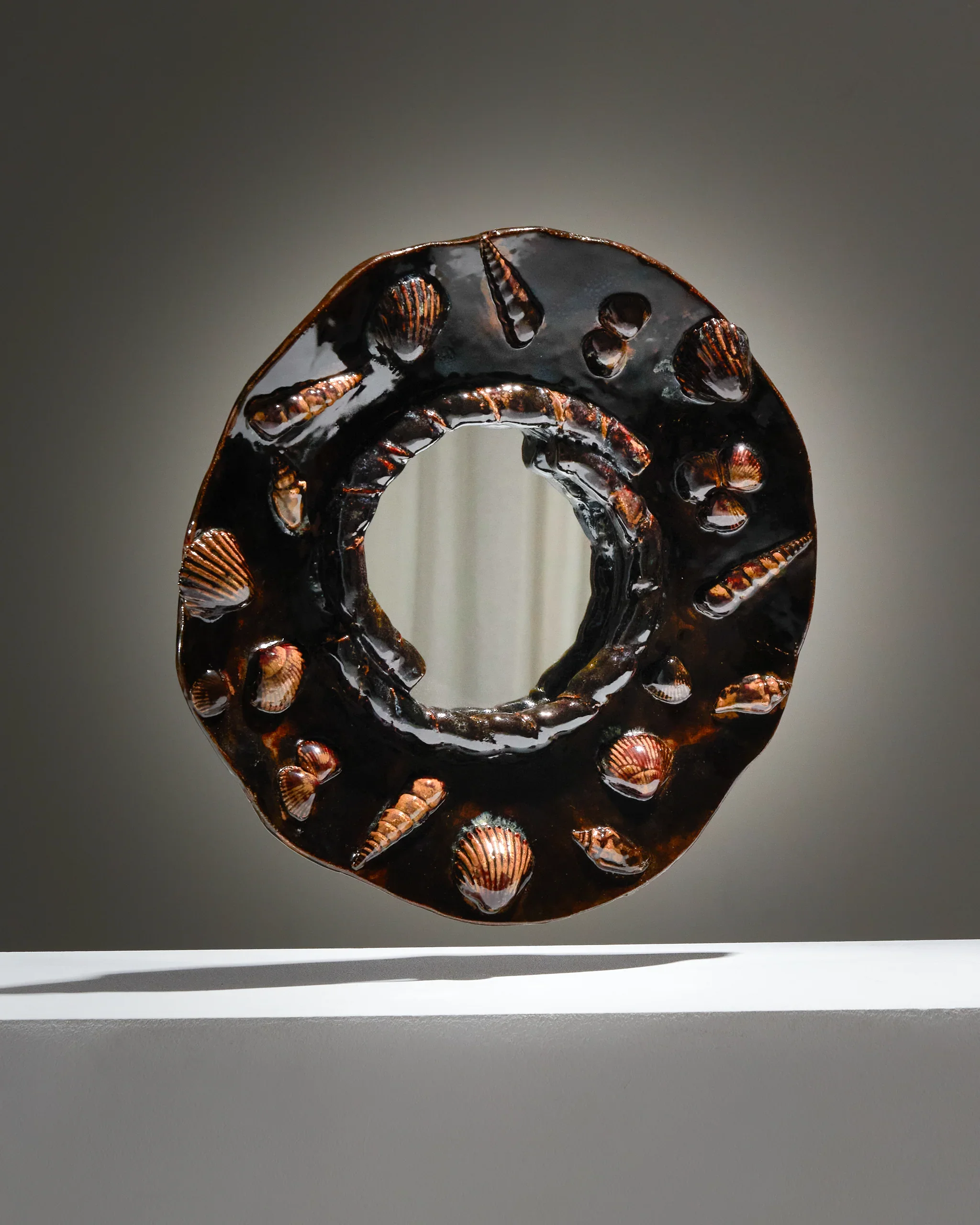 Des miroirs façonnés comme des horizons liquides, tels des lacs précieux où se dessinent des mondes intérieurs.
